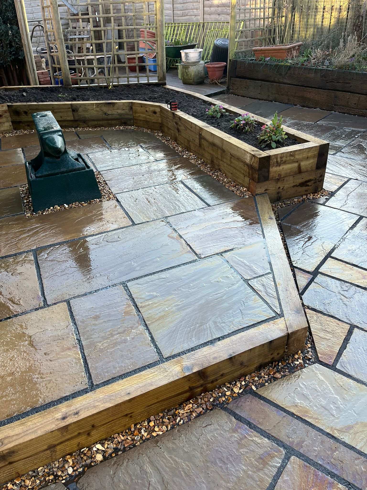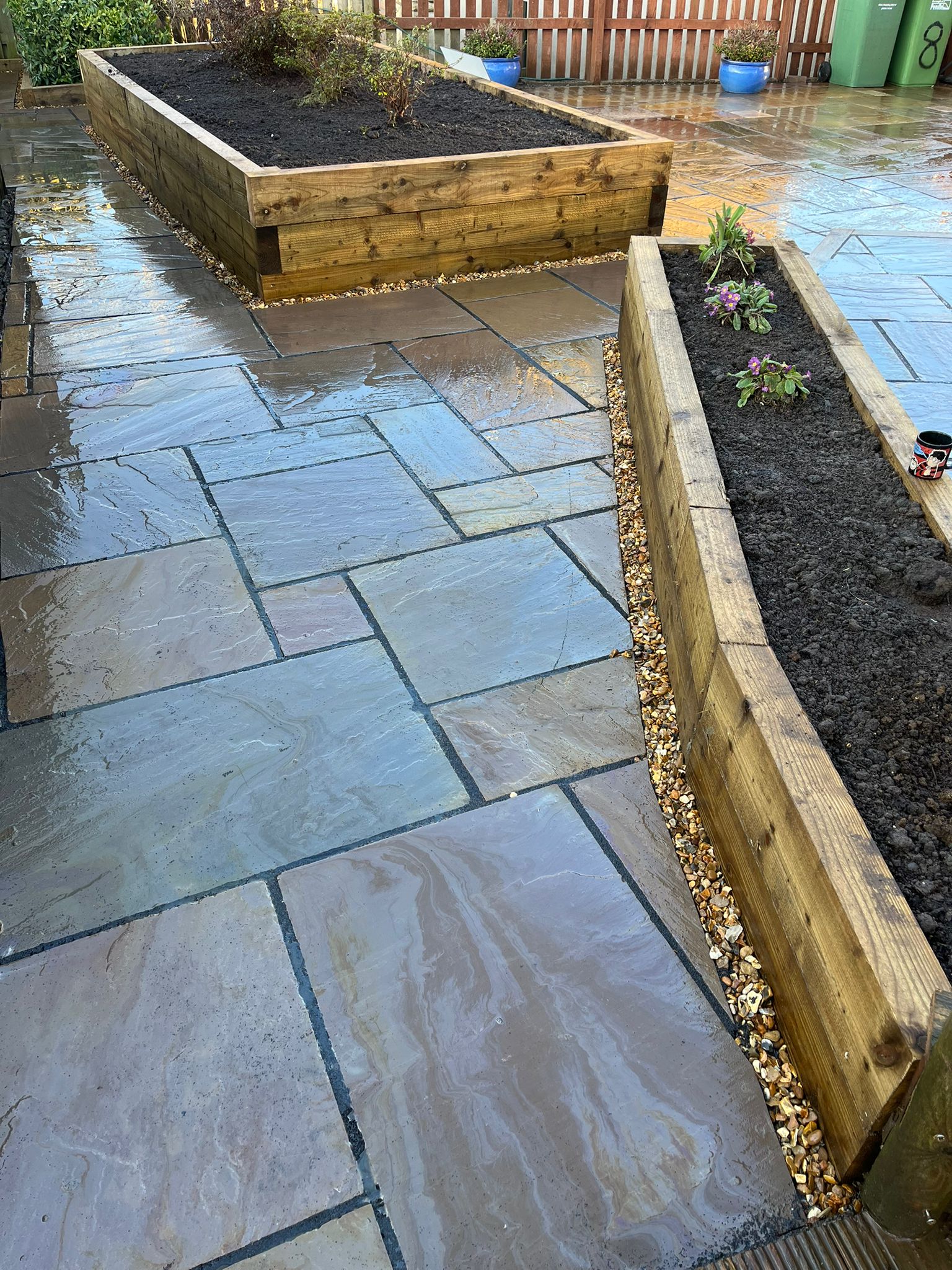 Flagging around the flower beds with proper drainage to ensure longevity