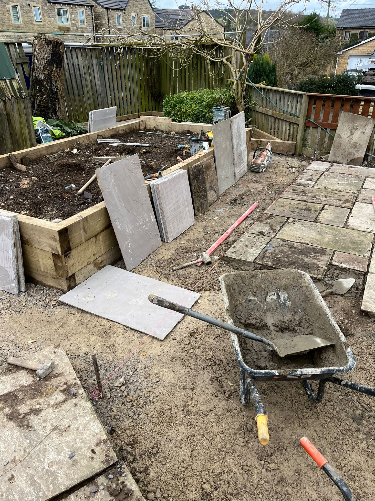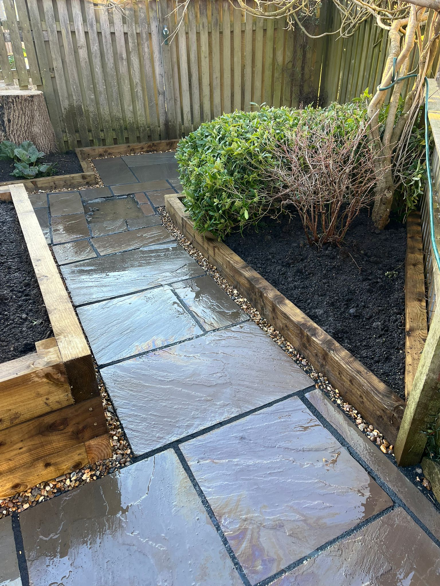 Paving the remaining garden area for a clean, modern finish